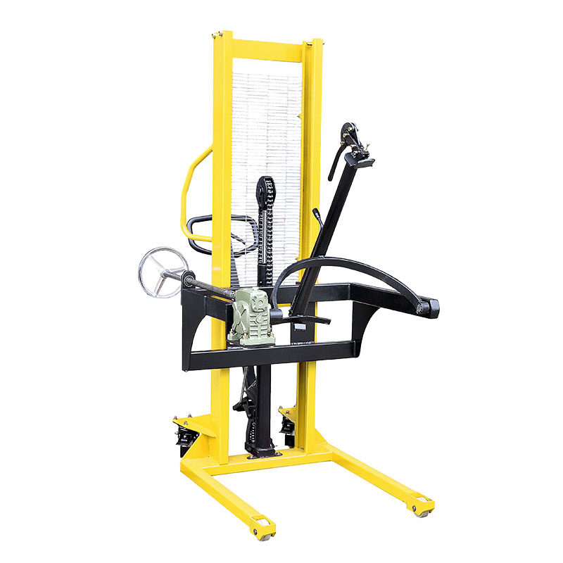 Semi-electric drum rotator with extended lift height for high stacking and industrial applications.