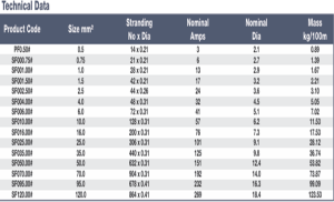 general purpose grade PVC in all colours. Insulation is water, oil and abrasion
