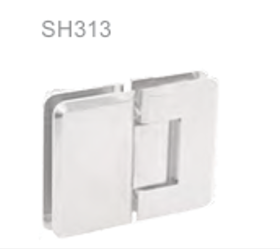 Connects two fixed glass panels at 180°, allowing one panel (usually the door) to pivot. Ideal for inline frameless shower enclosures where the door is aligned flush with a fixed side panel.