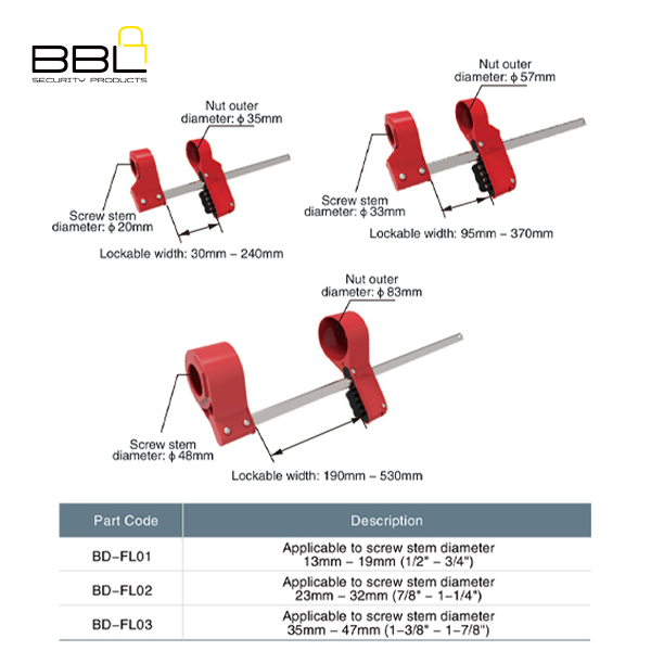 - BD-FL03 – Blind flange lockout device large (bolt nut ø 52mm – 70mm)