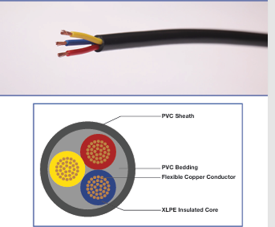 with XLPE. Insulated, twisted and filled with a PVC bedding to give the cable a round