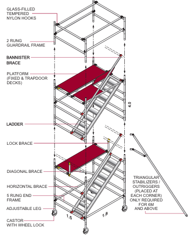 TS14500 Aluminium Stairway Tower — 14.5 m Height (1850 × 1500 mm)